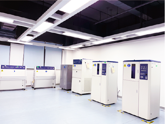 创信检测公司主要仪器设备有300余台,不仅配置气相色谱质谱联用仪、液相色谱仪、红外光谱仪、原子力显微镜、微机控制电子万能试验机等大型进口精密设备,同时还配套多台氙灯老化试验箱、紫外试验箱和高低温交变试验箱,全方位为客户提供建筑防水产品及其原材料的检测服务。